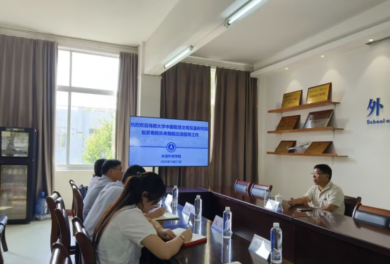 为进一步推动外语外贸学科建设与学术交流,10月17日,海南大学中国智慧文明互鉴研究院院长赵彦春莅临外语外贸学院开展交流指导工作。外语外贸学院副院长刘伟、商务英语教研室主任李茂君、副主任陈林林及外语外贸学院文琰老师等参会,共同围绕学科建设及学术发展等关键议题展开深入探讨。