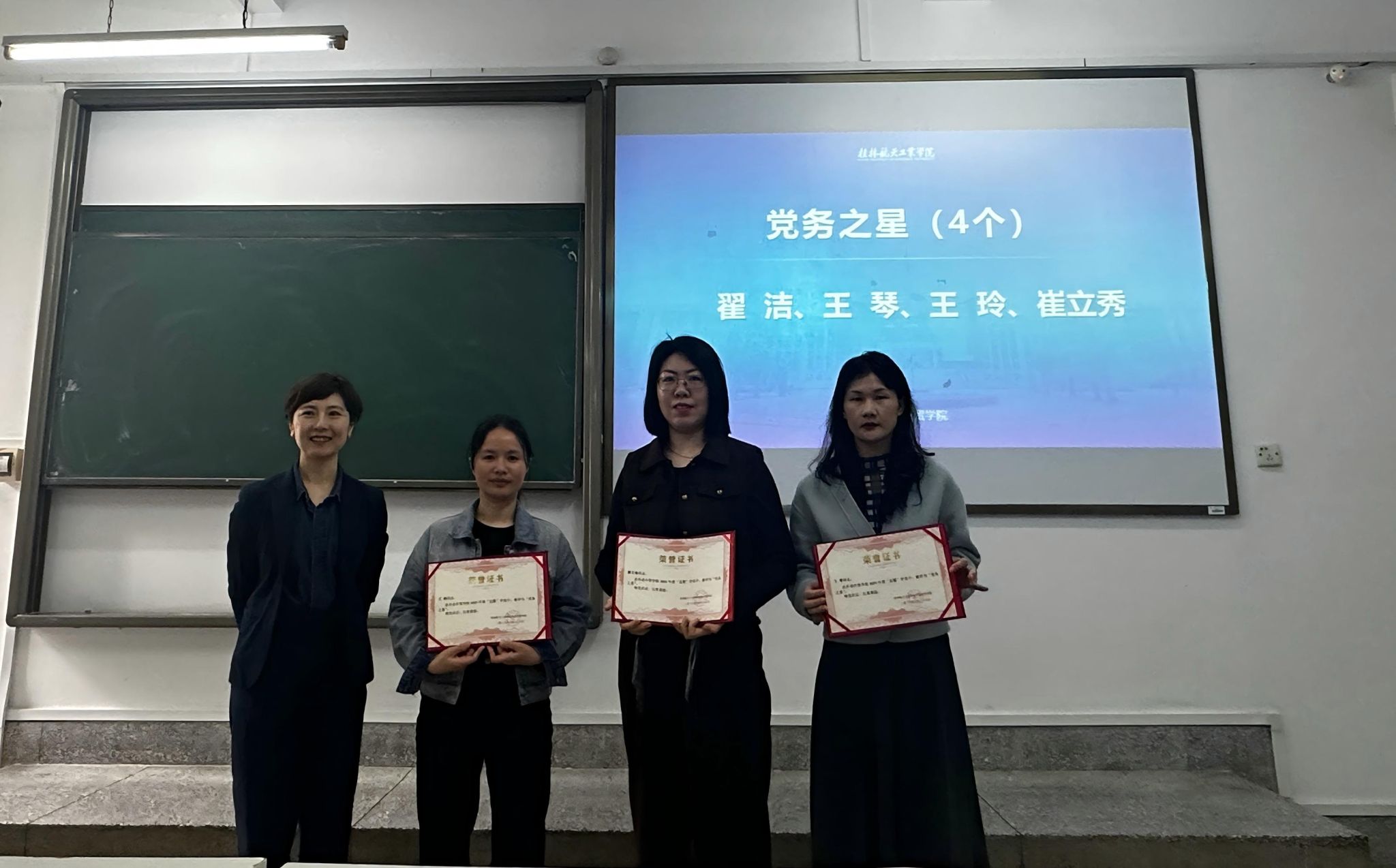 会上,学院党委书记唐琳指出,“五星”评选是学院在样板支部建设过程中总结并推广的以高质量党建引领学院高质量发展的工作举措之一,旨在褒奖和肯定老师们在学院建设和发展的各个领域作出的扎实工作业绩,弘扬无私奉献精神,营造学院求真务实、真抓实干的良好氛围。“五星”分别为党务之星、教学之星、科研之星、文体之星、奉献之星,今年根据实践工作需要增加了“宣传工作先进个人”的评选和奖励。